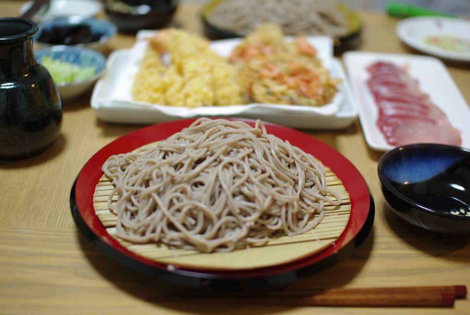 夕飯は熊本から送っていただいたお蕎麦と、買ってきた天ぷらやお刺身で家族団欒。