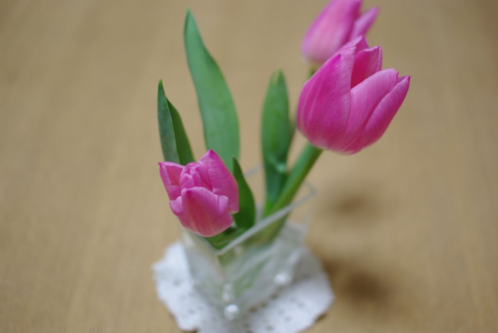 今日、お花屋さんに寄ったら「これ、あげちゃおうかな♪」と、チューリップをサービスしていただきました。