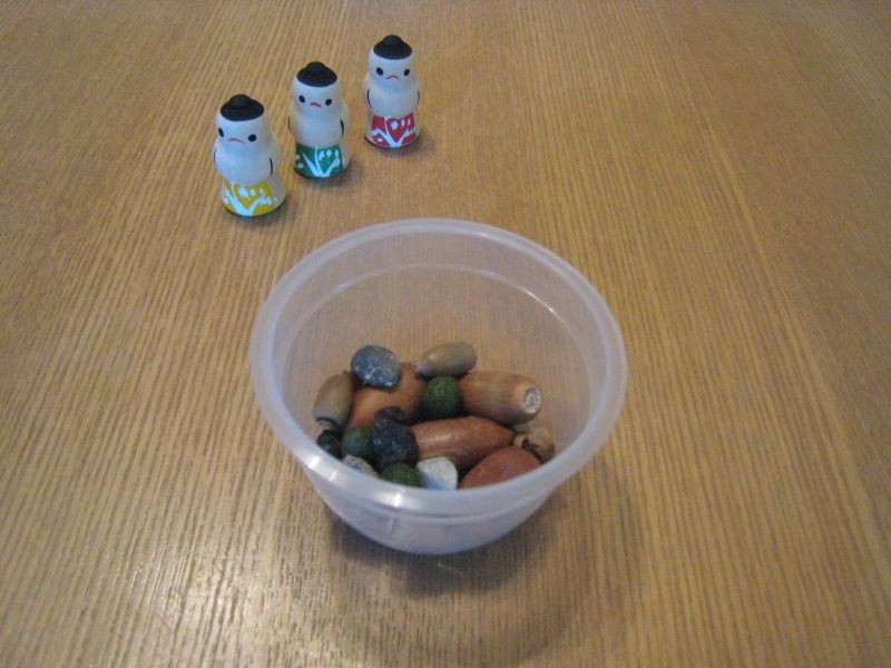 石・どんぐり・落ち葉・枝・実。