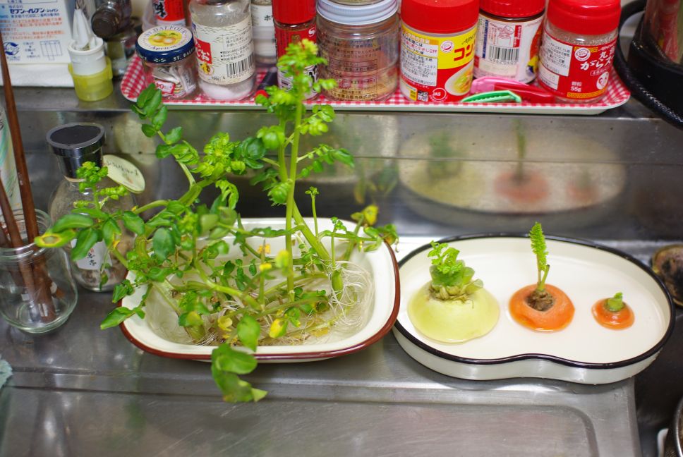 大根とニンジンも水栽培で葉っぱを育て始めたところです。