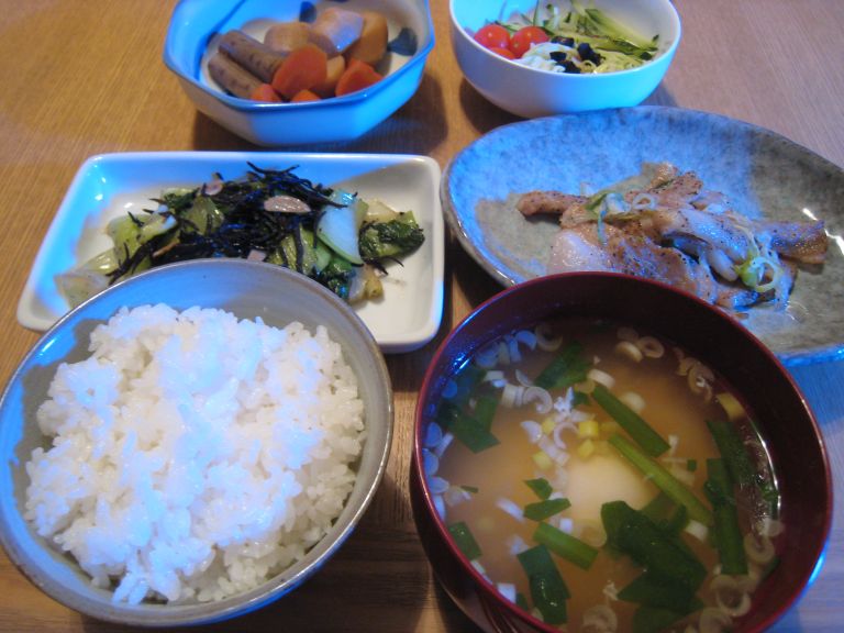 ひじきとチンゲン菜のニンニク炒め