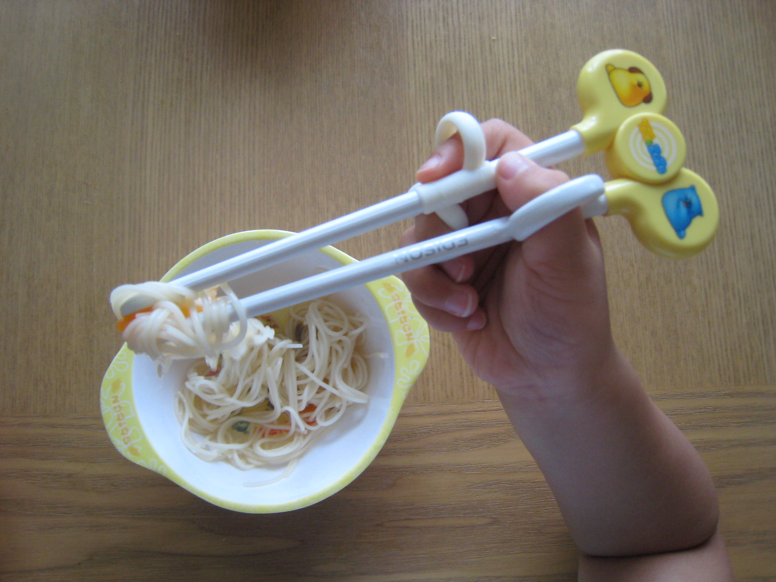 息子には箸に興味が出てきたころから、子供用の普通の箸を持たせていました。