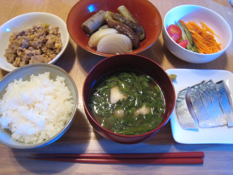 里芋と春菊の味噌汁(春菊はすき焼きかおひたしだろう、とパパは言う)