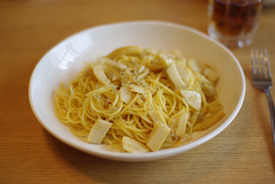 第一弾はタケノコとジャコの和風パスタ↑↑