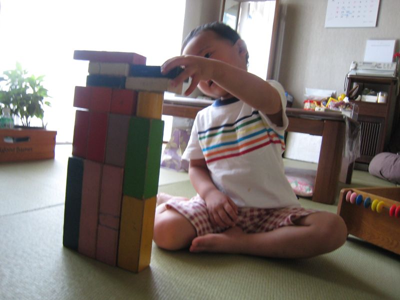 積み木でおうちを作るのがいつものパターンなのですが、今日はちょっと違いました。