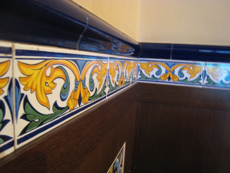 店内には多くのタイルが目にとまります。