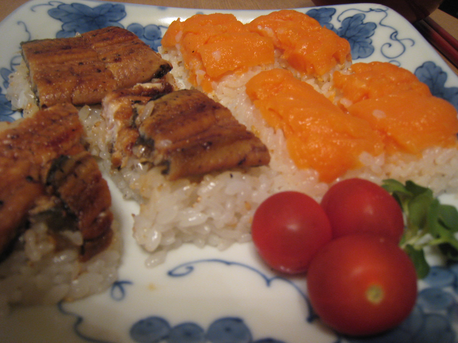 3.サーモンはそのまま。うなぎは湯せんで解凍。