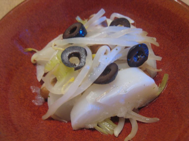 ソーセージとブラックオリーブ(盛り付けで登場)の塩分でちょうど良い塩梅。