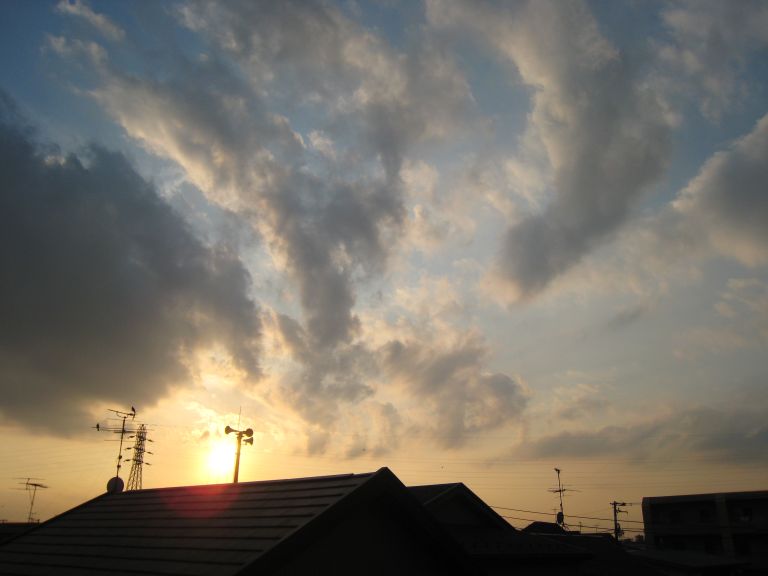夕方、玄関前で息子にカメラを向けたら空を撮ってとお願いされました。