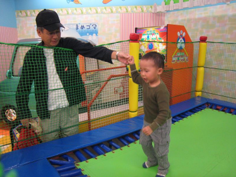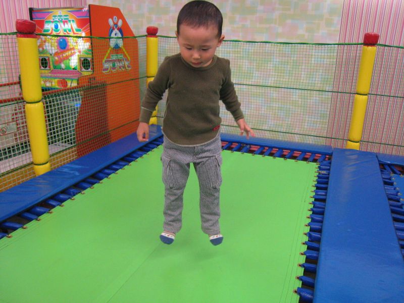 迎えに行くとトランポリンに挑戦すると意気込んでいます。