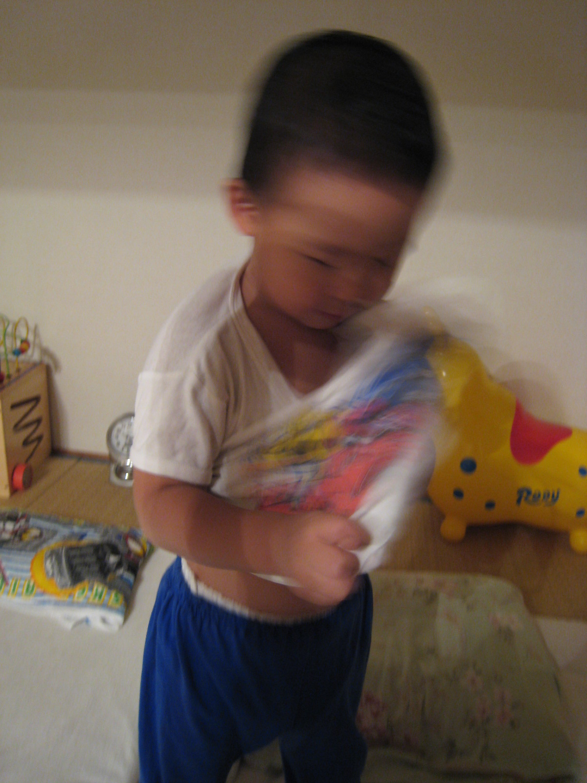 ようやく自分で着がえる意欲が出てきた息子↑↑
