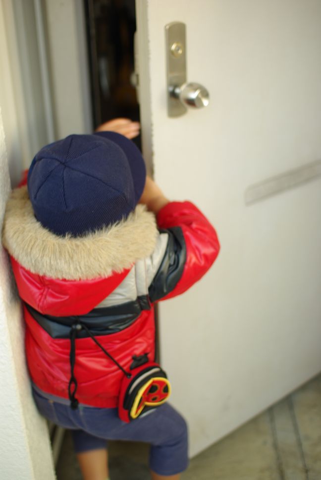 そんな息子も、玄関のドアはまだまだ重たいようで。