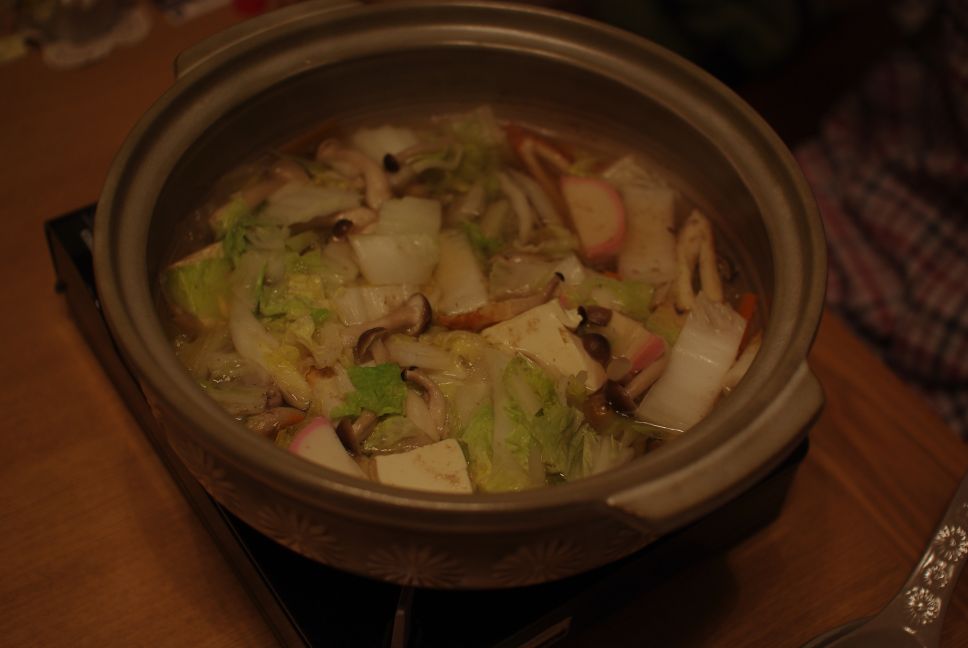 具材は白菜・ネギ・しめじ・豆腐・かまぼこ。