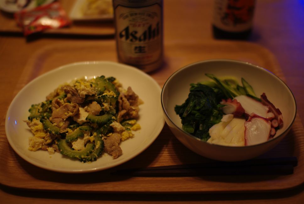 シンプルなゴーヤチャンプルとタコサラダ。