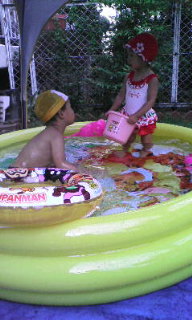 今日はチャマのお友達のお孫ちゃんとプール遊び♪