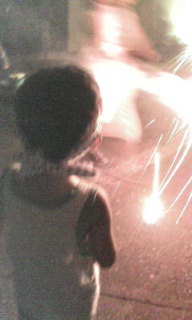 近所の子供たちと花火。